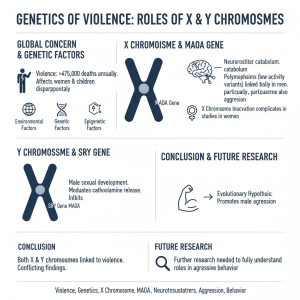 https://url-shortener.me/8423 Violence is a pressing global concern, causing more than 475 000 deaths annually and disproportionately affecting women and children. While environmental, genetic, and epigenetic factors contribute to violent behavior, this article focuses on the genetic aspect, particularly the roles of the X and Y chromosomes. The monoamino oxidase A