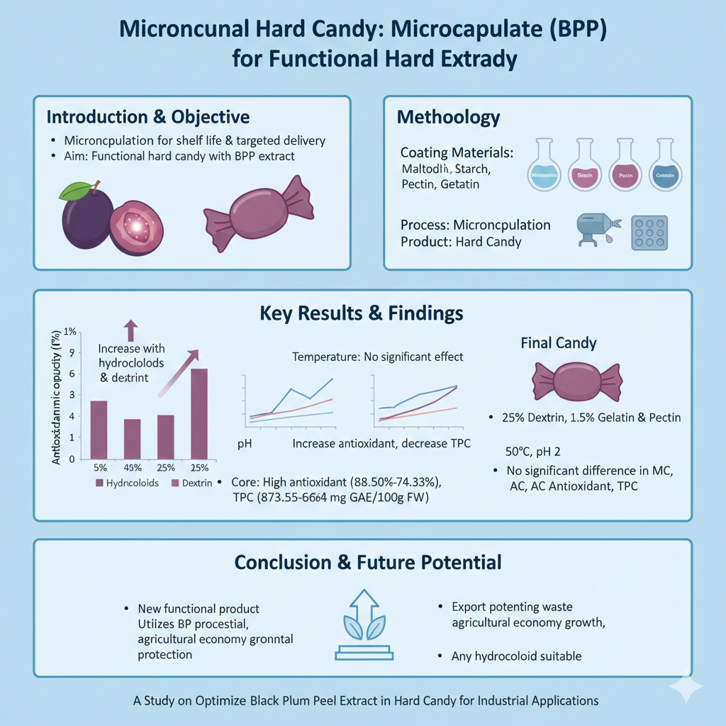 Aplicación de la microencapsulación del extracto de piel de ciruela negra en la producción de caramelos duros y su efecto sobre las propiedades químicas, la capacidad antioxidante y los compuestos fenólicos