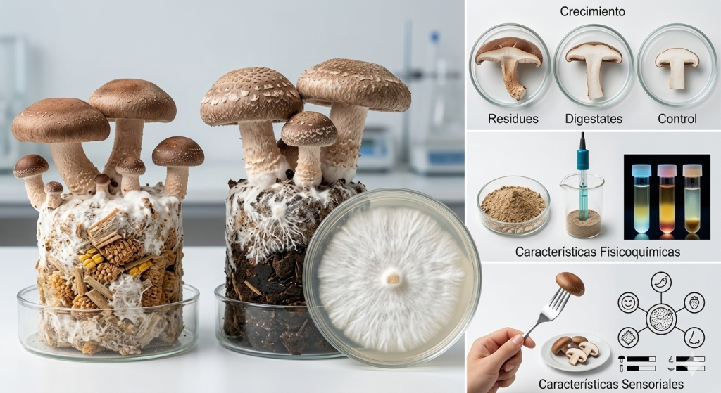 Vigor micelial, crecimiento, características fisicoquímicas y sensoriales de Lentinula edodes producidos a partir de residuos agroindustriales y sus digestatos anaeróbicos
