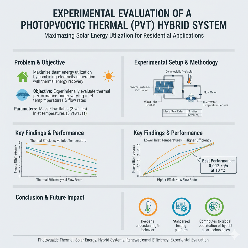 https://url-shortener.me/83Z1 Photovoltaic thermal (PVT) hybrid systems offer a promising approach to maximizing solar energy utilization by combining electricity generation with thermal energy recovery. This study presents an experimental evaluation of a commercially available PVT panel, focusing on its thermal performance under varying inlet temperatures and flow rates. The work addresses a gap in the literature regarding the real-world behavior of integrated systems, particularly in residential settings where space constraints and energy efficiency are crucial. Experimental tests were conducted at three mass flow rates and five inlet water temperatures, demonstrating that lower inlet temperatures and higher flow rates consistently improve thermal efficiency. The best-performing condition was achieved at 0.012 kg/s and 10 °C. These findings deepen our understanding of the panel’s thermal behavior and confirm its suitability for practical applications. The experimental platform developed in this study also enables standardized PVT testing under controlled conditions, supporting consistent evaluation across different settings and contributing to global optimization efforts for hybrid solar technologies. https://doi.org/10.3390/en18133373