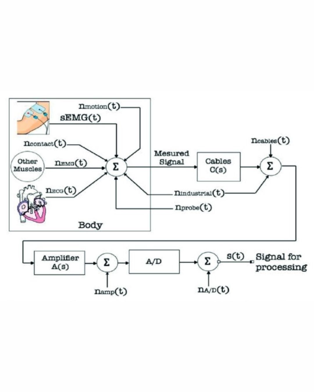 El objetivo de este estudio fue la integración del diseño basado en modelos y las técnicas de transformación Wavelet para filtrar señales de electromiografía de superficie (sEMG). En la primera etapa se analizaron los ruidos e interferencias que perturban las señales sEMG para implementar un filtro digital en un sistema integrado de bajo costo que filtre estas señales. Se ha demostrado que los ruidos y las interferencias son causadas por diversas fuentes. Las fuentes de interferencia y ruido se pueden dividir en internas y externas. El ruido interno es causado por los electrodos, las señales EMG de otros músculos y el ruido asociado con el funcionamiento de otros órganos como el corazón o el estómago.