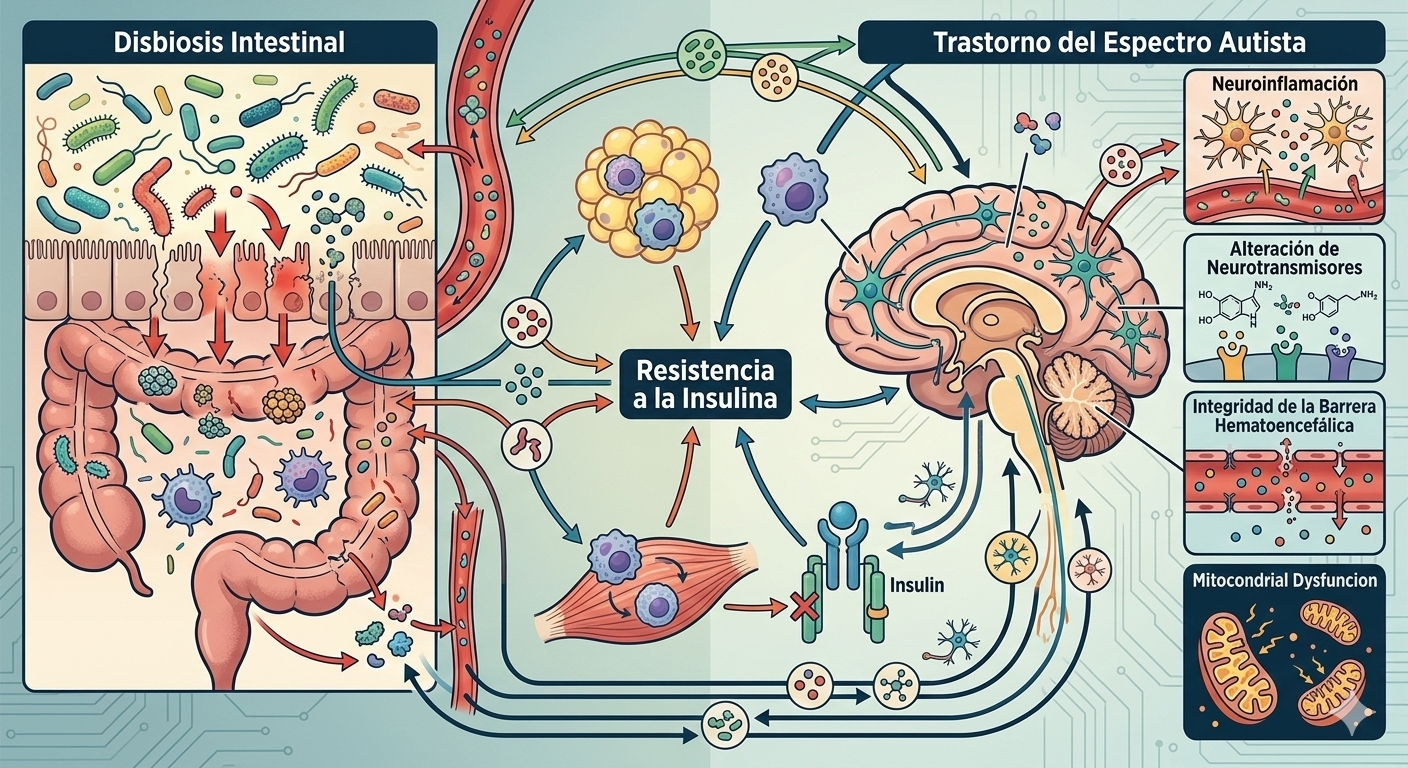 Vínculos mecánicos entre la disbiosis intestinal, la resistencia a la insulina y el trastorno del espectro autista