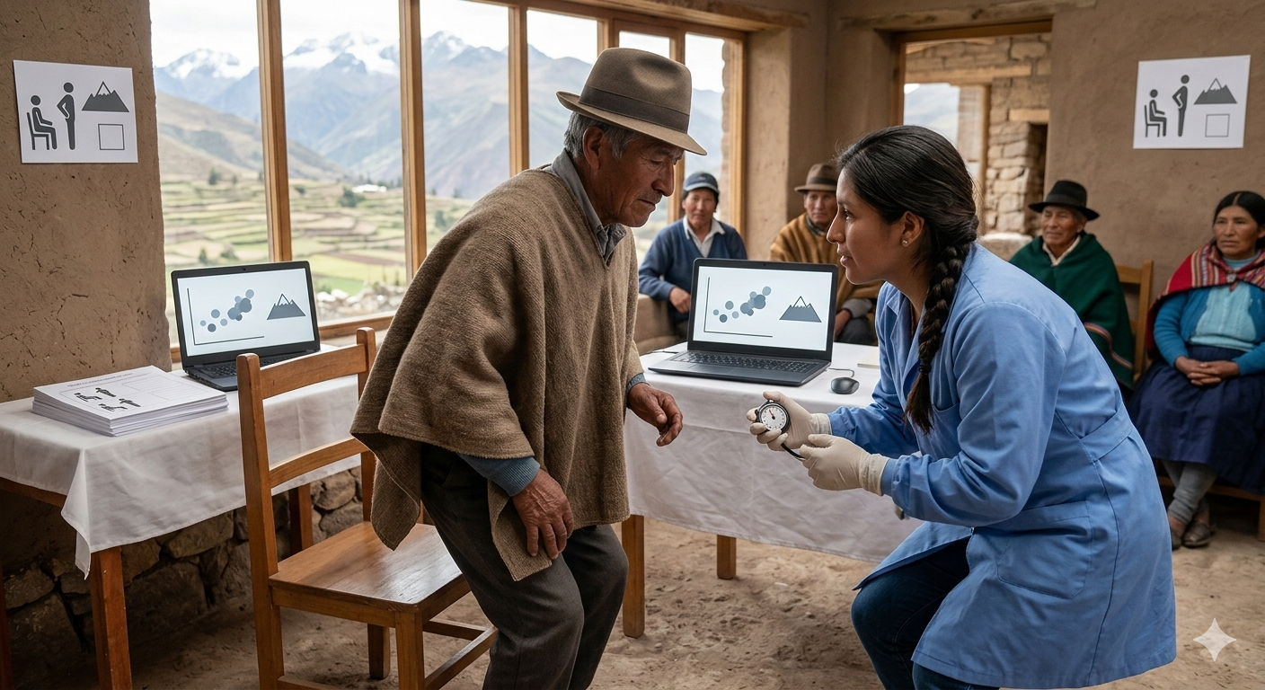 La prueba de un minuto de sentado a totalmente de pie (1min-STST) es una herramienta práctica de evaluación para medir la capacidad funcional. Los valores de referencia no están actualmente disponibles para las poblaciones que viven a gran altura.